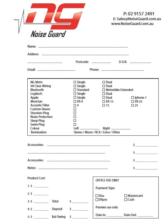 Send your Impressions to our postal address with your NoiseGuard Order Form & colour/product selection.